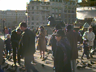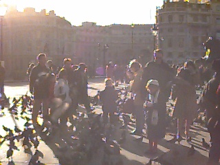 ![]() feeding the pigeons in Trafalgar Square ( my favourite place in London ) |
